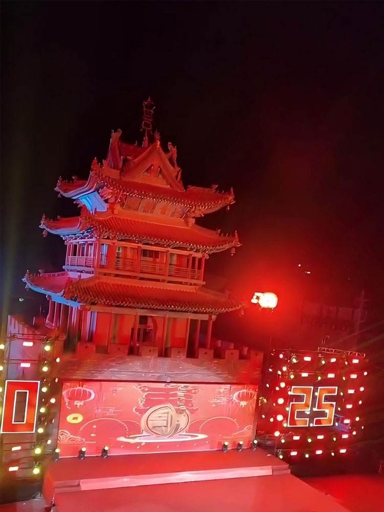 隰縣鼓樓又稱大觀樓,位于縣城正中心,是全國現存的20多處明代鼓樓中的一座。它位于縣城正中心,占地196平方米,通高約27米,磚拱門洞,十字貫通,至今已有390多年的歷史,是隰縣的象征。2025我司對鼓樓做了整體的亮化工程,采用大功率投光燈,在鼓勵的四角確定安裝機位,對鼓樓進項了整體的打亮,不但很好的保護鼓樓外立面不被破壞,整體出來的效果也是得到隰縣的認可。