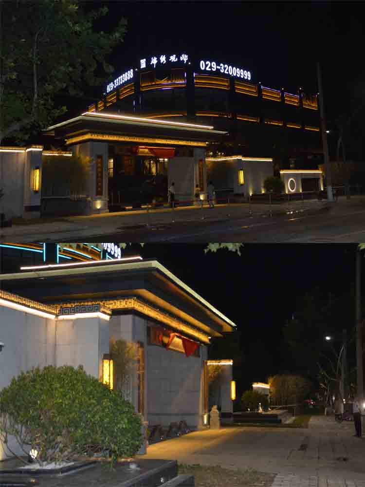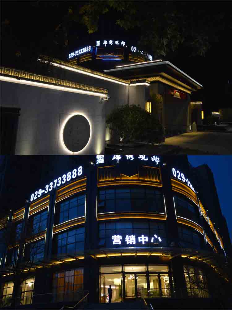 簡(jiǎn)介—— 2018 榮盛景秀觀邸售樓部亮化,蘭光設(shè)計(jì)師根據(jù)其榮盛景秀觀邸售樓部商業(yè)屬性,商業(yè)照明設(shè)計(jì)明亮而醒目,營(yíng)造商業(yè)經(jīng)營(yíng)的夜景氛圍。以靜態(tài)的暖色燈光將其打亮,凸顯雅致?!皹s盛景秀觀邸”標(biāo)志以高亮度的燈光,吸引顧客注意,增強(qiáng)商業(yè)宣傳力度。景觀燈造型與建筑外立面造型完美融合,晚上光斑效果與綠植景觀交相輝映,相映成趣!榮盛景秀觀邸