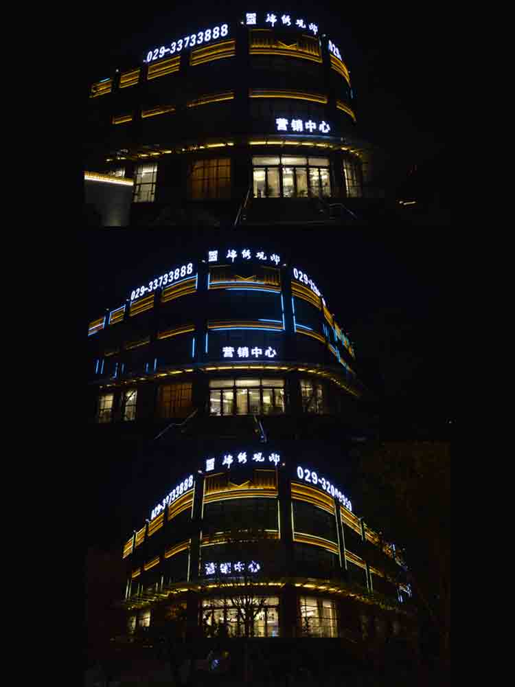 2018 榮盛景秀觀邸售樓部亮化,蘭光設(shè)計(jì)師根據(jù)其榮盛景秀觀邸售樓部商業(yè)屬性,商業(yè)照明設(shè)計(jì)明亮而醒目,營(yíng)造商業(yè)經(jīng)營(yíng)的夜景氛圍。以靜態(tài)的暖色燈光將其打亮,凸顯雅致?!皹s盛景秀觀邸”標(biāo)志以高亮度的燈光,吸引顧客注意,增強(qiáng)商業(yè)宣傳力度。景觀燈造型與建筑外立面造型完美融合,晚上光斑效果與綠植景觀交相輝映,相映成趣!榮盛景秀觀邸的亮化設(shè)計(jì)施工,獲得了客戶的高度認(rèn)可。