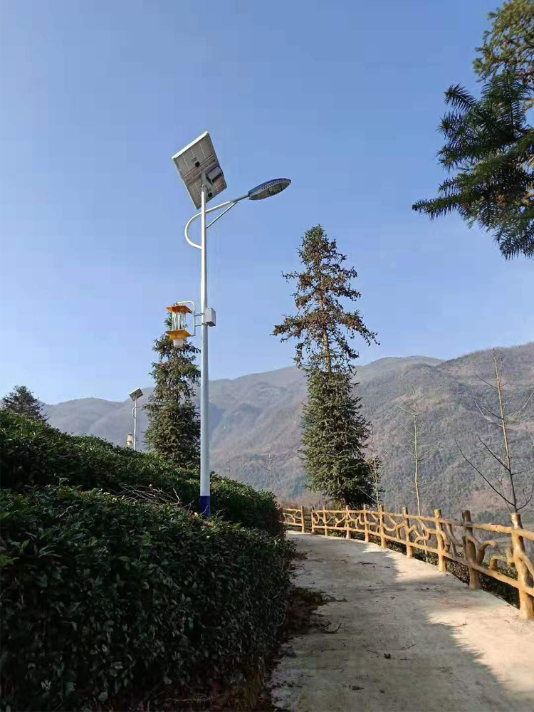 簡介—— 2020年公司生產的照明及殺蟲倆用的路燈產品,項目安裝與陜西西安周至,該燈具采用了倆套供電系統,一套是太陽能路燈系統,一套是太陽能殺蟲燈系統。各自獨立的系統使用更加的穩定。